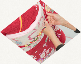 一級和裁技能士による本格手縫いにて、お客様のご要望に合わせた着物にお仕立てあげます。